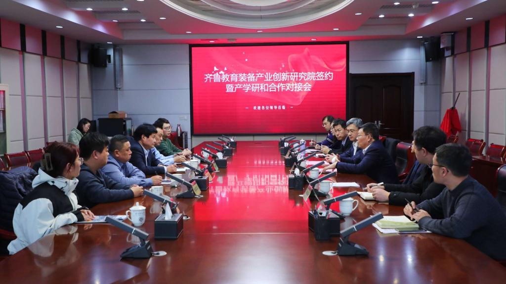 为积极推进校地、校企合作,有效促进产教融合、科教融汇,12月14日下午,“齐鲁教育装备产业创新研究院”签约暨产学研和合作对接会在第一会议室举行,签约后企业将设立100万元科研经费推动双方合作发展。党委书记林松柏出席会议并致辞,优秀校友、山东百草园教育装备有限公司董事长郭方华、高级顾问宋延江、销售总监孙中华及学校相关部门单位负责人出席签约仪式。仪式由副校长张兆明主持。