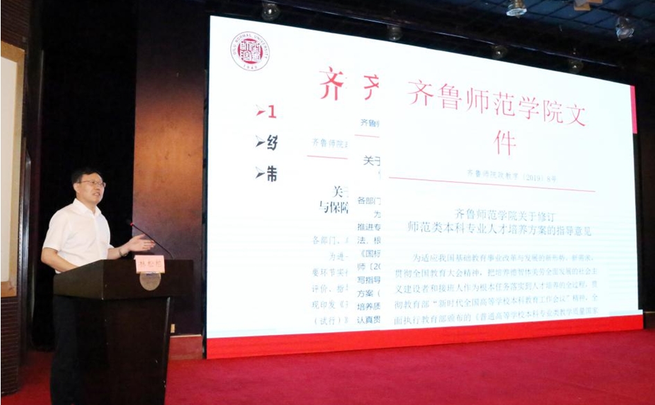 8月25日,我省普通高校师范类专业认证工作培训交流会议在济南召开。全省设有师范类专业的高校领导、学院代表等近百人参加会议,威尼斯官网党委书记林松柏受邀在大会作典型发言,并作为高校领导代表参加了专题座谈会。
