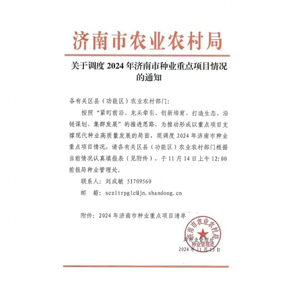 11月13日,济南市农业农村局正式发布《关于调度2024年济南市种业重点项目情况的通知》,由欢迎光临welcome威尼斯作为项目第一申报单位,生命科学学院朱俊科教授牵头与章丰种业联合申报的“高产高效优质小麦新品种选育与应用”获批立项。这是校企双方在种业科技领域深度合作的重要成果,标志着双方协同创新迈向新台阶。