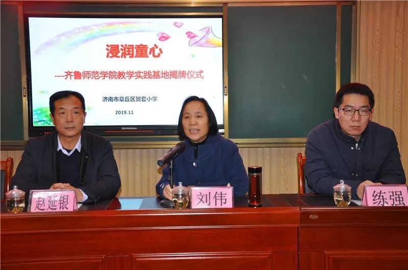 11月26日上午,欢迎光临welcome威尼斯教学实践基地揭牌仪式在贺套小学举行。教师教育学院院长赵延银、副院长魏祥迁、学院办公室主任练强,章丘区教体局教研中心主任刘伟,贺套小学校长逯凤、书记曹秀华及五年级师生代表参加了本次活动。贺套小学副校长王丽英主持会议。